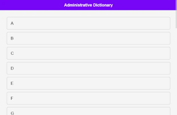 User-Friendly Interface: Navigate through our administrative dictionary effortlessly with a clean, easy-to-use design. Finding the right term has never been simpler.