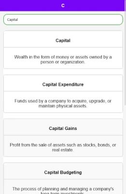 Powerful Search Functionality: Quickly locate terms and their meanings using our advanced search feature. No more scrolling through endless lists—just type in what you need, and you're good to go.