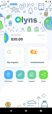 1. Download the Olyns App. 2. Create an account and save Olyns to your e-wallet. 3. Find the nearest Olyns bottle box on our map. 4. Hold your phone above the Recycle Ring on the Olyns bottle box for touchless check in. 5. Deposit your empty CRV containers into the Olyns bottle box. 6. Earn cash for every eligible container. 7. Cash Out your balance anytime through PayPal. 8. Celebrate - you just did your part to help the planet