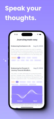◆ Voice-to-Text Journaling: Simply speak your thoughts, and ReflectAI transcribes them into detailed journal entries, capturing your unique style and tone.