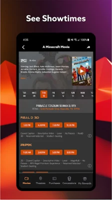• Collect movie coupons and rewards for every dollar spent on movie tickets and concessions
