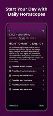 * Start your day with Daily Horoscopes which break down your personal transits into helpful categories.