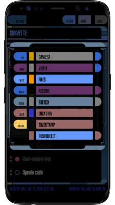 This app's interface is meant to parody the way sci-fi designers on a cheap budget imagined future computers 30 years ago. Made with cones, curves, and various blocks in the basic 256 colors computers were capable of at the time. Topped with tiny text that was meaningless and buttons with completely indecipherable function or layout.